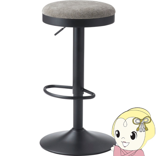 ■カウンタースツール スツール チェア モダン インダストリアル おしゃれ 黒 ブラック ファブリック ガス圧昇降式 360度回転 ライトグレー