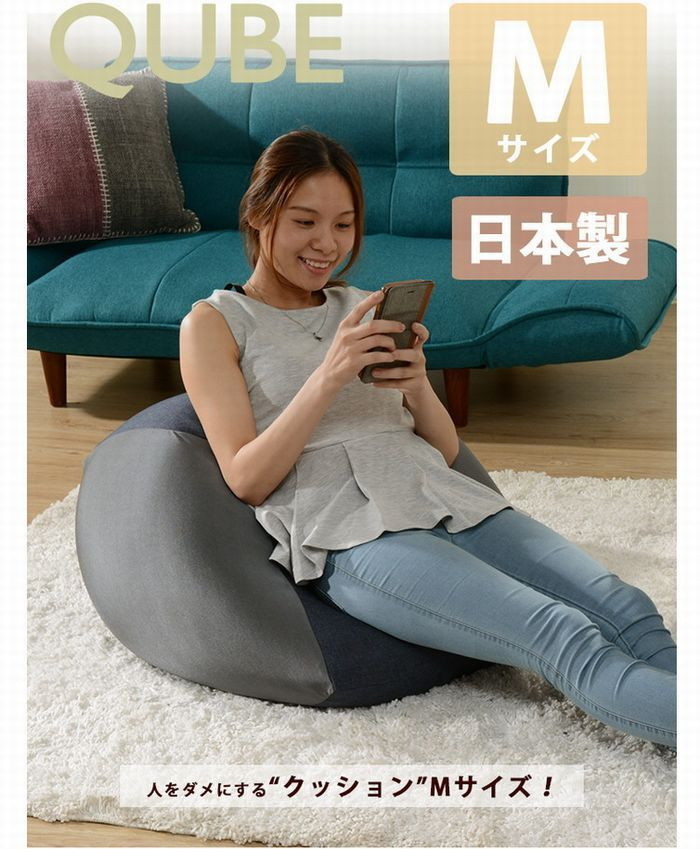 [商品仕様]【商品名】 ビーズクッション 『QUBE』 M【サイズ】 (約)W595x H365x D570(mm)(約)カバー縫製サイズ480×480×410(mm)【重量】 (約)2 800g【素材】 中材:発泡ポリスチレンビーズ収縮する生地:ポリエステル88% ポリウレタン12%収縮しない生地:ポリエステル 100% 【製造国】 日本製 カバーは輸入品※アッシュグレーとインディゴブルーのスティチ生地(伸びる生地)は同色のグレーの生地です。[商品説明]極小ビーズを使用した日本製のビーズクッションカバーリングタイプで洗濯ができます。10種類のカラーをご用意[カラー]ベージュ・レッド・アッシュグレー・インディゴブルー[送料]本州一律無料(沖縄・離島は配達不可)[備考]ご注文後に国内工場で生産を行います。在庫有り時は7営業日以内に発送予定とさせていただいておりますが通常は2〜3営業日程度で発送可能でございます。※お急ぎの場合は必ず事前に在庫確認を行って下さい。※メーカー倉庫より直送になります。生産状況によっては発送にお時間が掛かる場合がございます。お時間が掛かる場合はメールで発送予定日をご