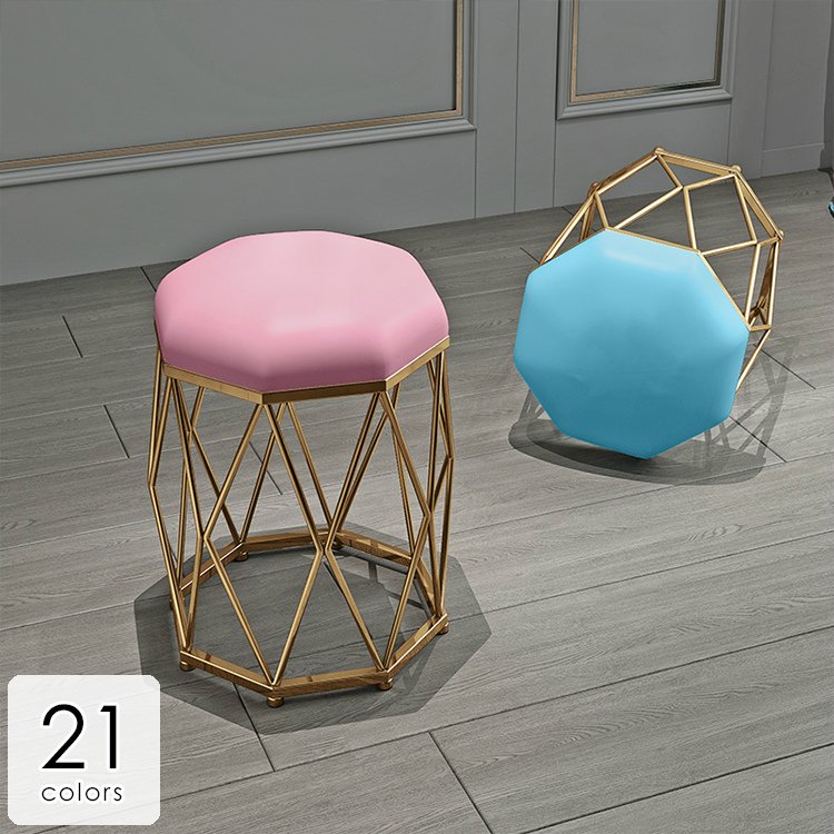 ■インテリア 家具 イス チェア スツール 八角形 ダイヤ エレガント モダン リビング ダイニング 寝室 ホワイト ピンク ブルー /