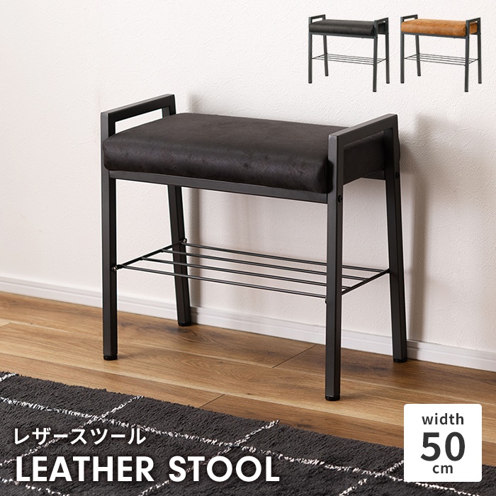 ■【値下げ】レザースツール 椅子 チェア 棚付き スチールフレーム 軽量 取っ手付き 背もたれ無し 収納棚 おしゃれ モダン シック シンプル