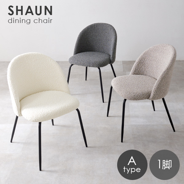 ぽこぽことした質感が特徴的なブークレ生地とブラックのスチール脚を組み合わせたダイニングチェア。張り地で使用したブークレ生地は毛足が短くさらりとした触り心地なのでオールシーズン快適にご利用いただけます。細身のフレーム脚は光沢感を抑えたマットな質感でスタイリッシュな印象に。【商品サイズ(約)】幅52×奥行54×高さ72cm【梱包サイズ(約)】54×60×65cm(6kg)【材質】座面:ポリエステル(ウレタンフォーム)脚部:金属(粉体塗装)【生産国】中国【備考】組立品