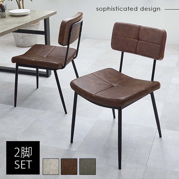 ■ダイニングチェア 2脚セット おしゃれ チェア チェアー 椅子 北欧 アイアン 食卓椅子 モダン 合成皮革 レザー調 ヴィンテージ風 ステッチ