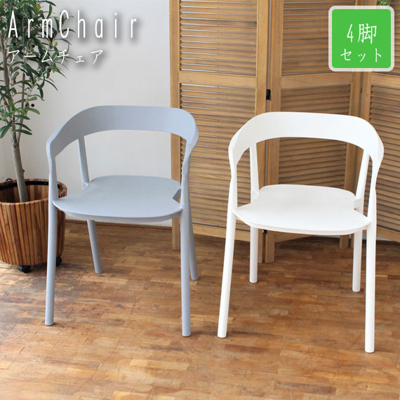 ■AQUA アクア アームチェア 4脚セット (チェア 椅子 イス ダイニング グレー ホワイト モダン ガーデンチェア 屋外 エクステリア 事務所