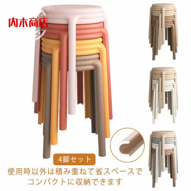 丸いす 椅子 ポリプロピレン 円形 チェア 積み重ね ニュアンスカラー 高さ45cm コンパクト ダイニングチェア スタッキング 送料無料 丸 簡易 軽量 持ち運びやすい 北欧 おしゃれ 省スペース 収納便利 シンプル モダン 4脚セット!スツール