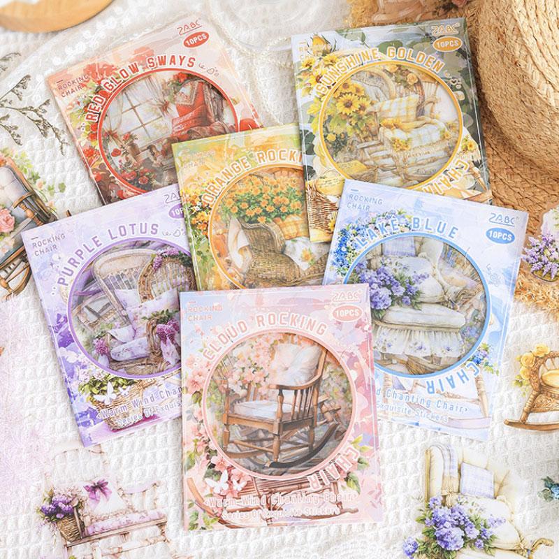 品番|ST540種類|シール数量|10枚入(10種類, 各1枚)材質|PVC素材特徴|ロッキングチェアだけを集めた大きめシールセット※モニターの発色具合によって実際のものと色が異なる場合があります。