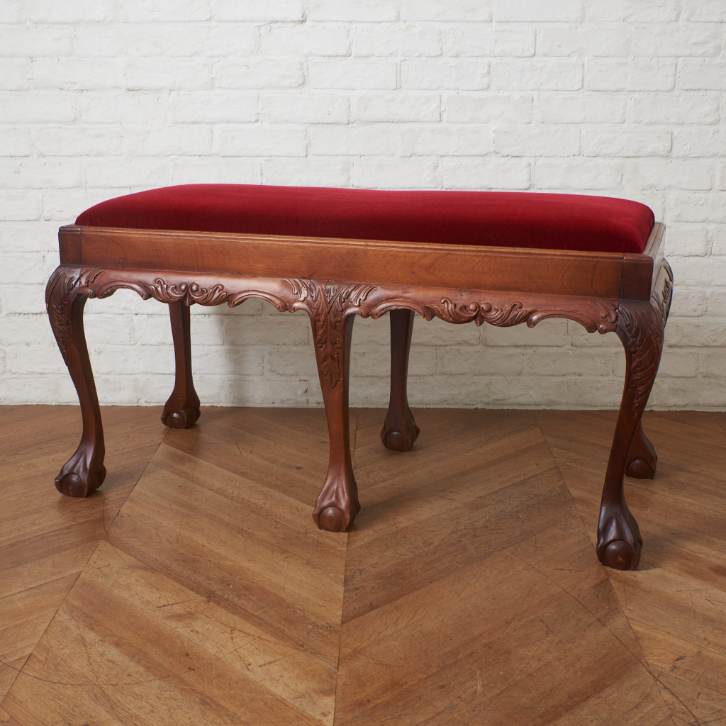 ■張替済 英国 クラシック スツール マホガニー ベンチ 木製 ロココ アンティーク スタイル チェア 長椅子 オットマン イス 腰掛け 85661