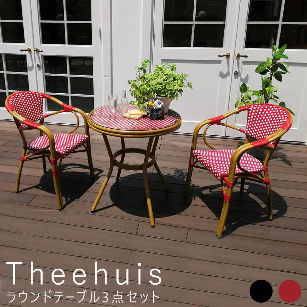 ■ラウンドテーブル3点セット 簡単組立 完成品 カフェ テラス 庭 椅子 チェア アンティーク インテリア 家具 送料無料
