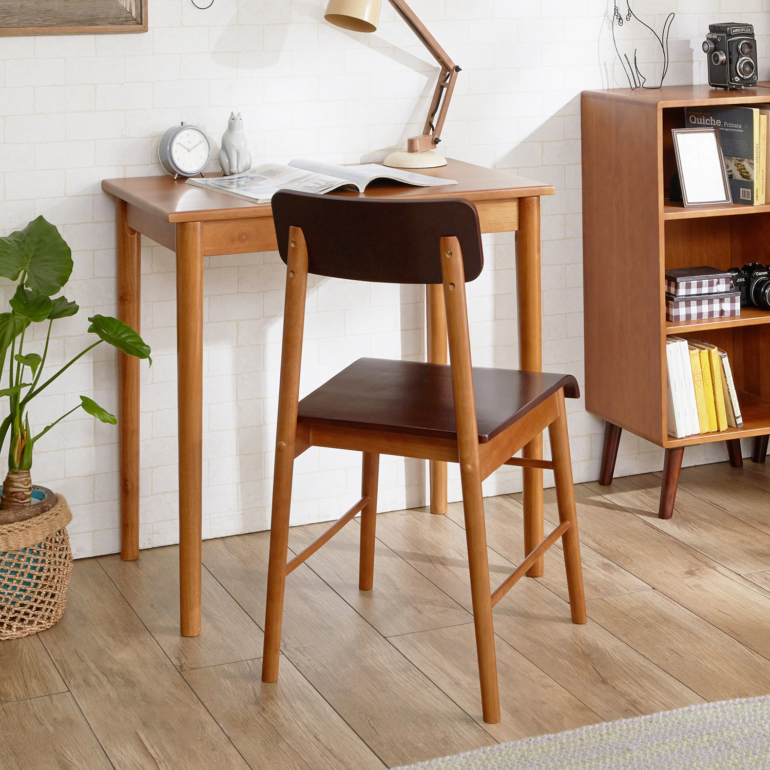 天然木ラバーウッドを使用したシンプルチェア座面と背もたれに深みのあるダークブラウン、脚部にナチュラルブラウンとツートンカラーでおしゃれに仕上げましたまた、前に向かって曲線を持たせた長めの座面が独特なデザインちょっぴりレトロな雰囲気が漂う後ろ姿もかわいいので、お部屋のインテリアのアクセントにしても天然木の同シリーズでコーディネートするとより素敵なインテリアを楽しめます#デスクチェア#オフィスチェア#パーソナルチェア#パソコンチェア