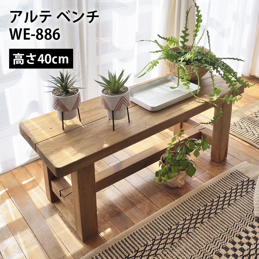 アルテベンチ WE-886 ベンチ 椅子 長椅子 チェア 木製 天然木 パイン材 古材 アンティーク シンプル レトロ アームレス 背もたれなし 幅110cm おしゃれ