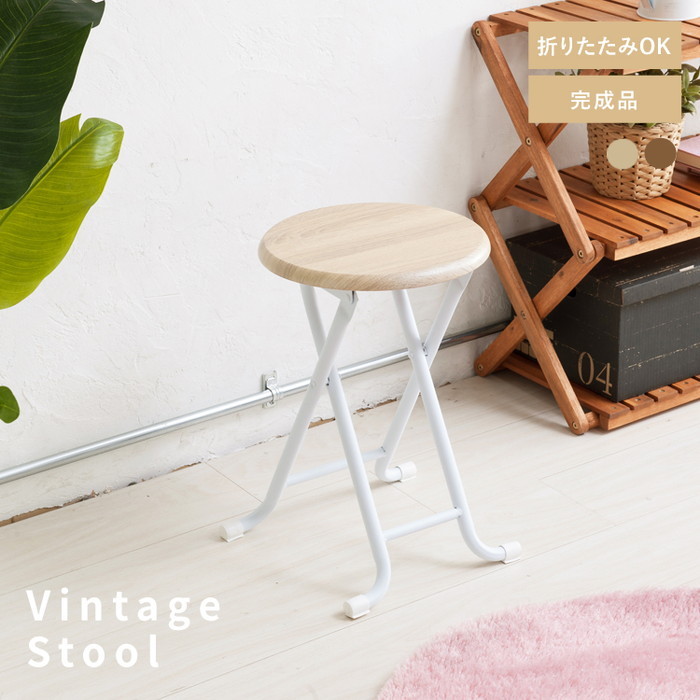 ■【値下げ】スツール 折りたたみ 椅子 座椅子 ヴィンテージスツール チェア 丸 レトロ カウンターチェア スチール