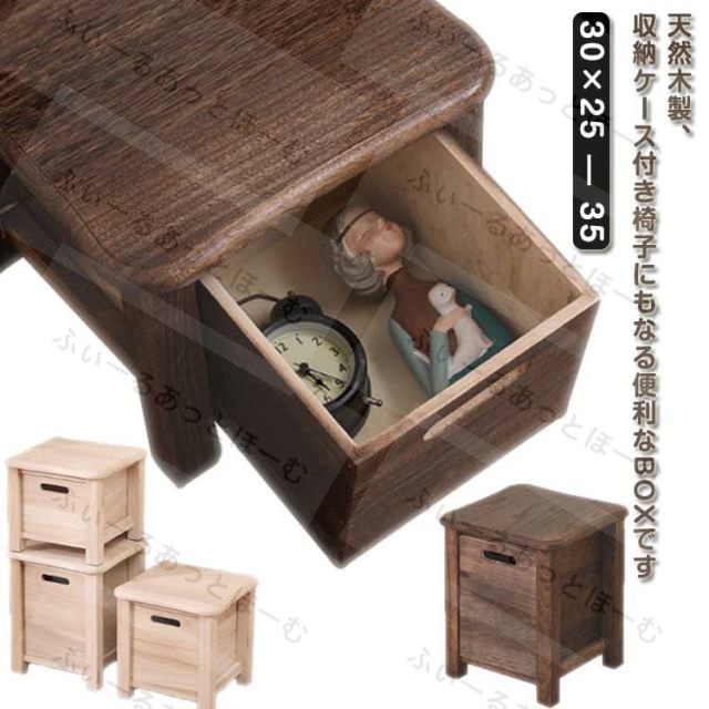 木製 収納スツール 30cm 収納 ボックス おしゃれ 天然木 引き出し 収納椅子 チェア スツール 椅子 イス 木椅子 アンティーク 北欧 レトロ 背もたれなし おもちゃ箱 玄関 幅30cm 高さ25/30/35cm