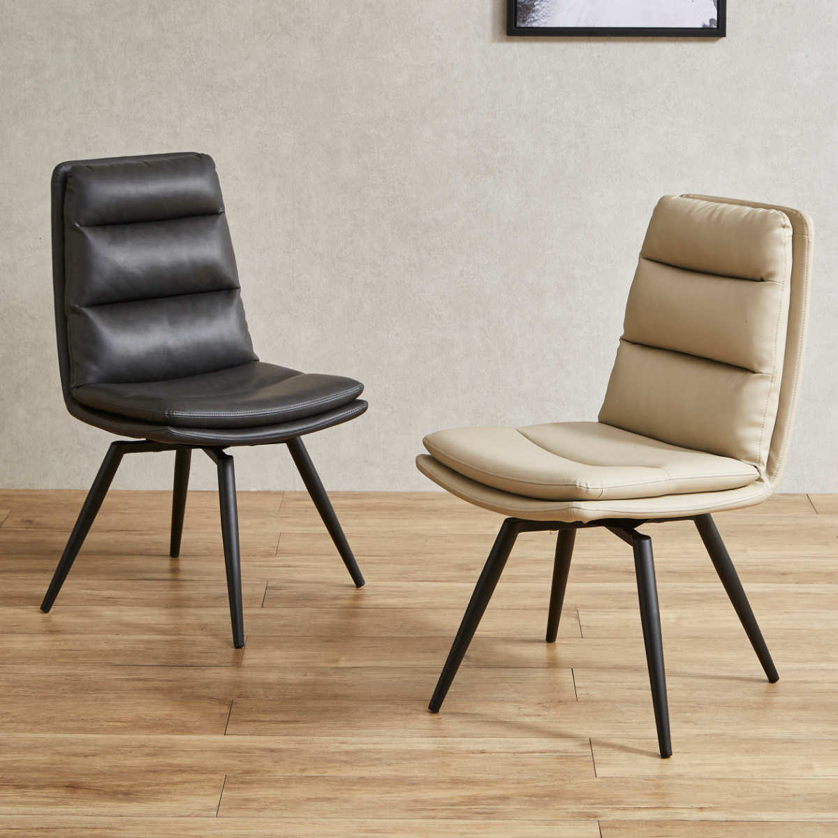 ■ダイニングチェア 回転式 同色2脚セット 座面高45cm バフィー ( チェア 椅子 食卓 ダイニング レザー調 肘なし スタイリッシュ シンプル