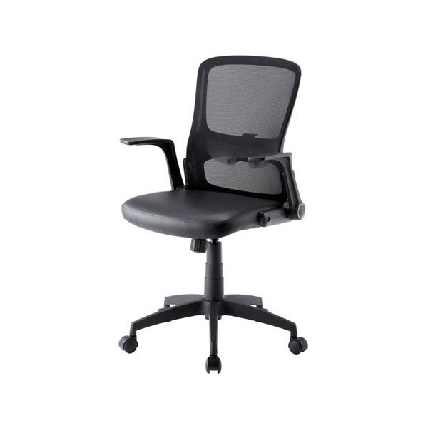 ■レザー&メッシュチェア (イス 椅子) ブラック CNN-006BK 1脚 (お客様組立) 黒 送料無料
