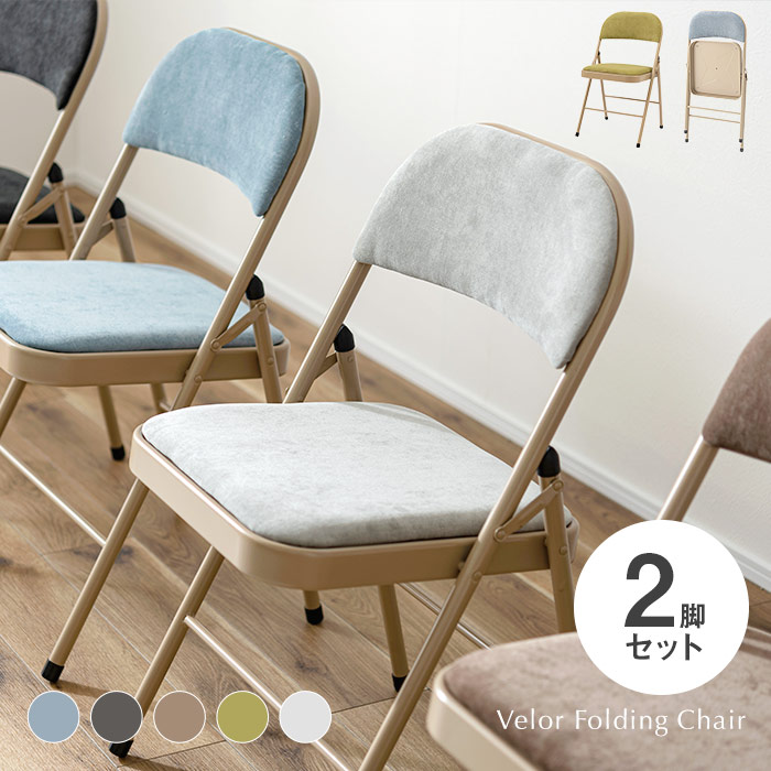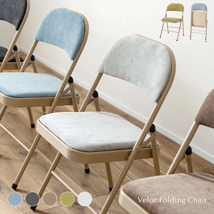 スモーキーでおしゃれなカラーリングのスチール製折り畳みチェア。 定番の折り畳みスチールチェアをおしゃれにアレンジした、ベージュ色のフレームと座面のカラーリングが絶妙なチェア。 さらりとして手触りの良いベロア調の座面は、クッション性があって座り心地も快適。フレームは安定感のあるスチール製で、折り畳めばちょっとした隙間にも収納可能です。 ご自宅でのデスクワークやダイニングチェアとしてはもちろん、ミーティングスペースやセミナーなどの会議用にもおすすめ。 カラーはモダンで落ち着きのあるベージュ、シックでクールなブラック、上品で優しい雰囲気のグレー、涼しげで爽やかな印象のブルー、インテリアのポイントになるグリーンの5色からお選びいただけます。