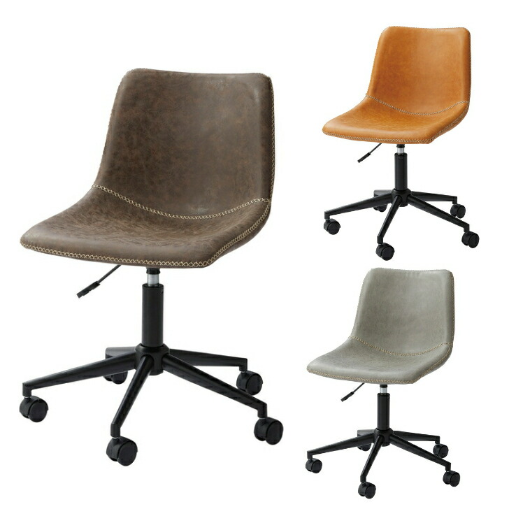 ■回転チェア デスクチェア オフィスチェア 座面回転 キャスター付き 移動可能 肘なし ソフトレザー スタイリッシュ シンプル ブラウン グ