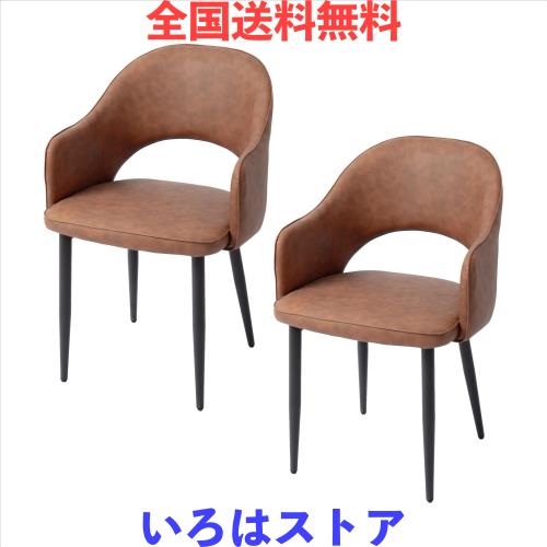 ■Murongun ダイニングチェア 食卓椅子 2脚セット シンプル スタイリッシュ 疲れにくい 背もたれあり 肘付き PUレザー素材 ブラウン