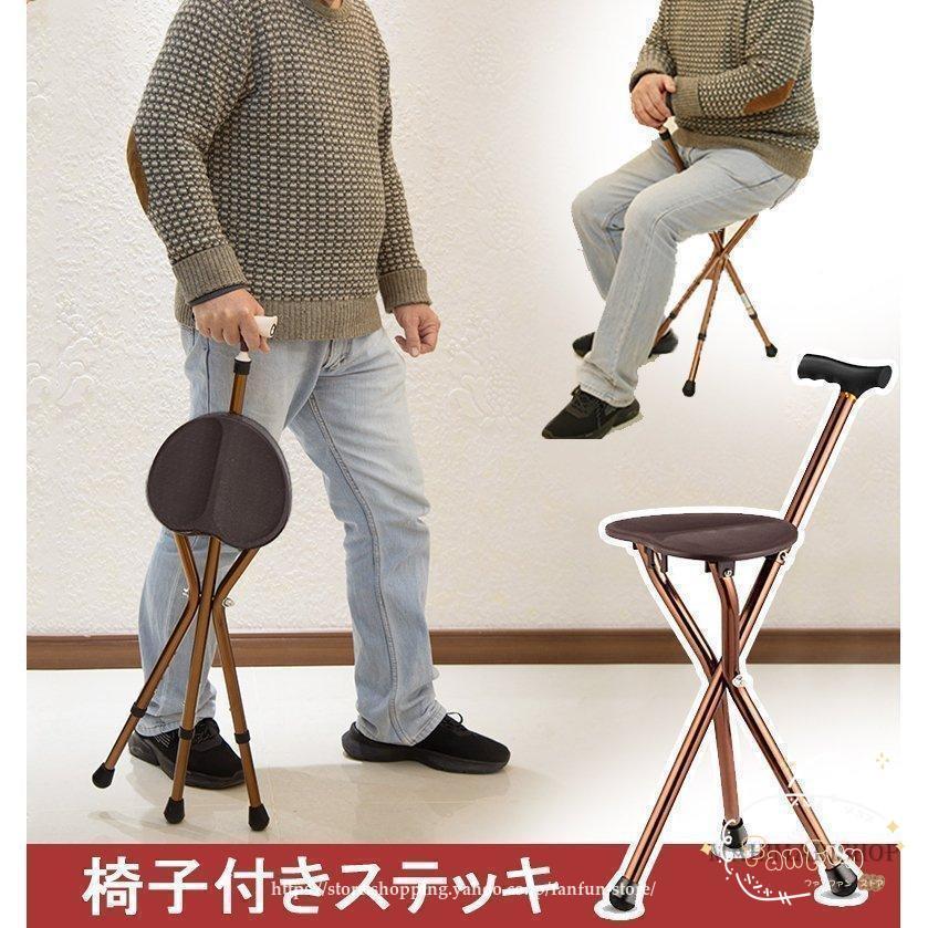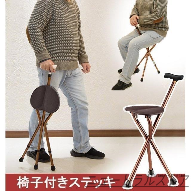 ステッキチェア 椅子付き ステッキ 杖 折りたたみ ハイグレード ワンタッ 軽量 スタイリッシュ 折畳み式 便利 ゴルフ観戦 釣り お年寄り 高齢者 敬老の日
