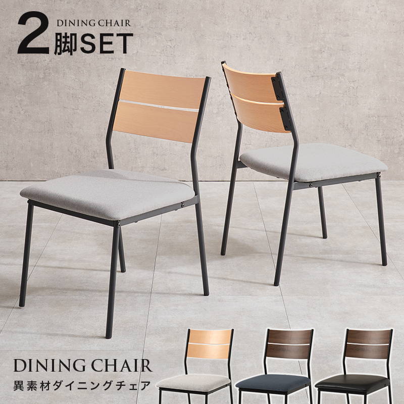 ■ダイニングチェア 2脚セット 肘無し おしゃれ シンプル モダン スタイリッシュ 異素材
