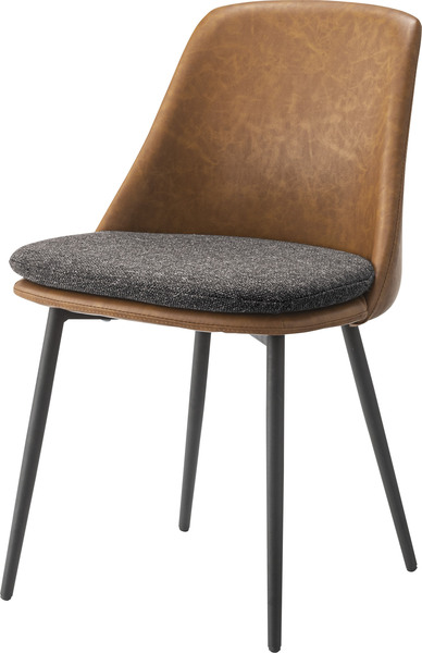 W50×D55.5×H79.5×SH47ブラウンレザーと布地の貼地が目を引くアファブルチェア 座面の幅が広いのでゆったりとした座り心地を体感できます。チェア ダイニングチェア 椅子 イス ダイニング スチール ソフトレザー 幅50cm スタイリッシュ アームレス ライトブラウン ダークグレー