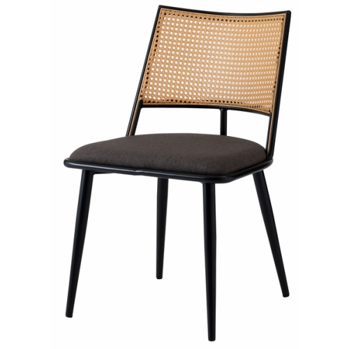 ●ラタン調×ファブリックのスタイリッシュなデザイン。 ●ポリエチレン素材のラタン調デザインを施した背面と、ファブリック素材の座面の組み合わせが新鮮なチェア。 ●あたたかみがありながらもスタイリッシュなスチールの細脚でぐっと引き締まった印象も与えてくれます。 カラー:ダークグレーサイズ:W49×D57×H78×SH46スペック:スチール(粉体塗装) ポリエステル ポリエチレン原産地:中国