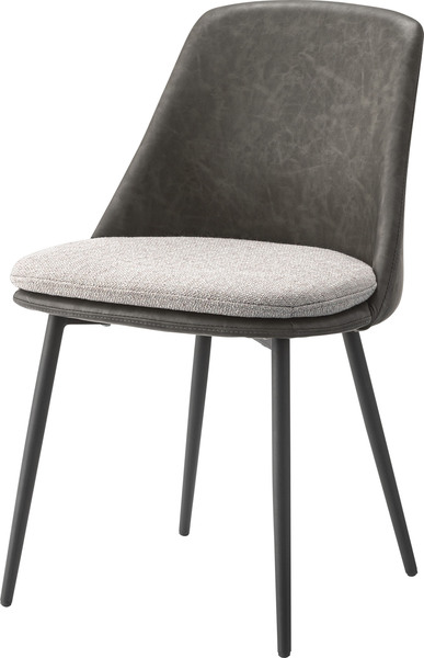 W50×D55.5×H79.5×SH47グレーレザーと布地の貼地が目を引くアファブルチェア 座面の幅が広いのでゆったりとした座り心地を体感できます。 ※座面クッション取り外し不可チェア ダイニングチェア 椅子 イス ダイニング スチール ソフトレザー 幅50cm スタイリッシュ アームレス ライトブラウン ダークグレー