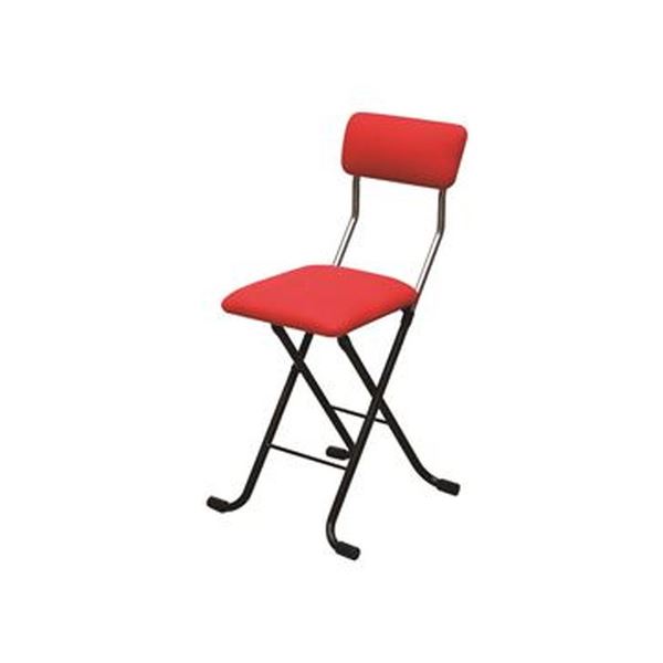 ■折りたたみ椅子 (イス チェア) 幅400×奥行445×高さ765mm レッド×ブラック 日本製 国産 金属 スチール パイプ 完成品 1脚販売 リビング