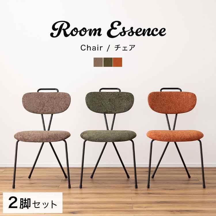 【チェア】 デザイン性の高い斬新なフォルムのチェア。背面のクロスが特徴的でどの角度から見ても無駄のないシンプルなスタイルのアクロス。あたたかみのある生地とインテリアになじみやすいカラー展開で様々なテイストに合わせることができます。背中にフィットする背面。引き出しやすい背面の取っ手。脚先には保護キャップ付き。スタイリッシュで強度のあるスチール脚。 ■ブランド名 Room Essence / ルームエッセンス ■品番 PC-83DBR/PC-83KH/PC-83OR ■サイズ 約H82×W49×D61×SH45.5cm ■重量 約5.5kg ■素材 スチール(粉体塗装)、ポリエステル ■生産国 中国 ■付属品 六角レンチ ■備考 組立式