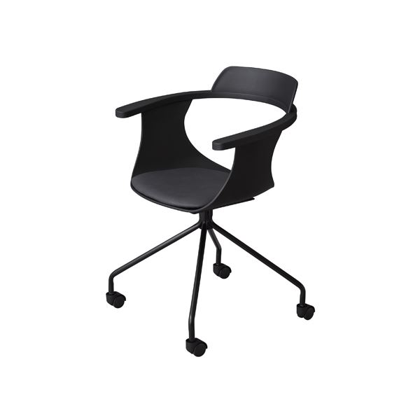 ■オフィス 事務用 チェア (イス 椅子) デスク (テーブル 机) チェア 幅60cm ブラック キャスター 肘付き 金属 スチール お客様組立品 リビ