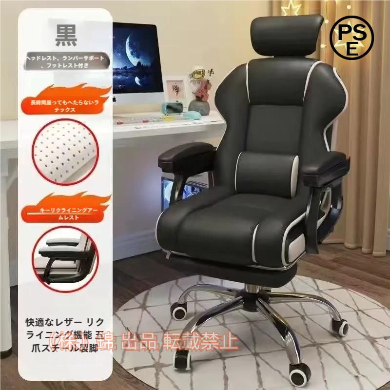 ■社長椅子 ゲーミングチェア デスクチェア 360度回転昇降機能 リクライニングチェア 肉厚座面 事務椅子 錦ブラック ハイバック 人間工学