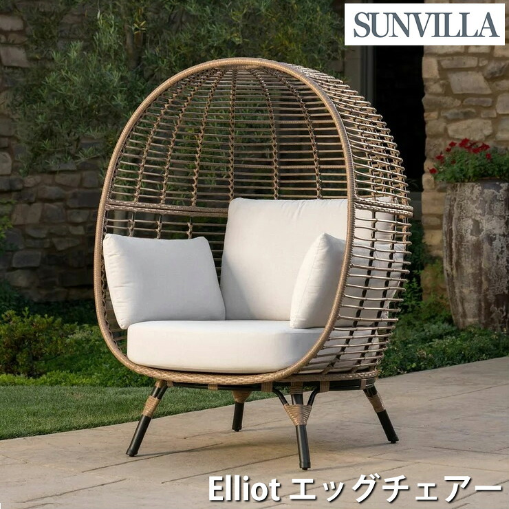 ■SunVilla サンヴィラ Elliot エッグチェアー 屋外用 ガーデン ラタンチェア ハンギング風 コージー Egg Chair 1人掛け プールサイド ベラ