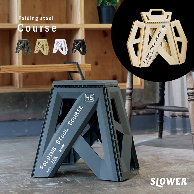 ■SLOWER FOLDING STOOL Course(折りたたみ椅子 軽量 持ち運び コンパクト 折りたたみ踏み台 フォールディングスツール)
