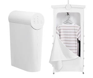 雨などで外に干せない時に活躍! ご自宅のハンガーラックが衣類乾燥機に早変わりコンパクトなのにパワフルで、電気代も安い!おしゃれ家電ブランド「±0」のコンパクト衣類乾燥機!雨の日は洗濯物の乾燥が悩みのタネ。部屋干しではなかなか乾かないし、生乾きの嫌なニオイも気になります。かといって浴室乾燥機などは電気代が心配…。そこでおすすめなのが、『±0 コンパクト衣類乾燥機』。見た目は「コレ、なに?」って思うほどシンプルでおしゃれですが、サッと広げると中から乾燥カバーが出現。ラックなどに吊るして、中にハンガーごと服をかければどこでも衣類乾燥機に!コンパクトなのにパワフルで、電気代も安い!乾きにくい運動靴などの乾燥もお任せください!どこがスゴイの?◎コンパクトなのにパワフル乾燥!◎電気代が安い!〈使い方は簡単!〉(1)フックをハンガーラックや浴室パイプなどに吊り下げます。(2)本体を広げ、乾燥カバーの中に衣類をかけ、ファスナーを閉めます。 (ハンガーは9個かかるので、Tシャツやワイシャツなど9枚分乾燥OK)(3)スイッチを入れて、LOW(送風)、HIGH(温風)を選んで完了! タイマーは、最長で7時間まで設定可能です。こんなにコンパクトなのにパワフル乾燥!収納時はわずかA4サイズほどで、乾燥カバーを広げてもクローゼットのパイプに掛けられるほどコンパクト。それなのに乾燥機能はかなりパワフル!◎部屋干しだと約228分かかるところ、コレだと約76分で乾いたという実験データも。なんと3分の1に短縮!※約2kgの洗濯物が水分率10%に至る時間(室温20℃・湿度65%、HIGHモードにて実施)。ユニチカガーメンテック(株)リサーチラボ調べ※乾き具合は、気温や湿度、衣類の種類や素材、枚数、湿り具合いにより異なります。〈素早く乾く秘密は?〉乾燥カバーの中だけに温風を集中させるため、効率よく、スピーディに乾燥できます。◎乾燥させるものに合わせて、乾燥カバーの丈を3段階に調節できるのも便利。お子さんの体操着や靴など急いで乾かしたい時は短め丈にするとより効率的です。〈こんな時に便利!1台あると大活躍!〉〇明日どうしても必要な洋服に。○急な雨で濡れたコートやジャケットを素早く乾燥させたい時に。○乾きにくいフード部分の乾燥や厚手のタオルの乾燥に。○回転しないので衣類をやさしく、傷まないよう乾かしたい時に。○洋服だけでなく靴やクッションなども乾かせます。○外に干したくない下着などの乾燥にもおすすめ。〈ダニモード〉HIGH(温風運転)で4時間運転するダニモード。実験ではダニ退治99%のデータがあり、70℃の温風でダニ対策ができるので、枕やぬいぐるみ、ペット用ベッドなどに。※ダニモード4時間使用の結果(東京環境アレルギー研究所調べ)※環境によって結果は異なります。〈こんな嬉しい工夫も〉◎付属のハンガーアダプターを使用すると、90度向きを変えて吊り下げることができます。幅が約50cmだったのが約20cmになるから、クローゼットの中※でも場所を取りにくく、邪魔になりにくい。※クローゼットでご使用の際は扉を開けたまま締め切らずにご使用ください。◎乾燥カバーが汚れたら、取り外して手洗い可能。お手入れも手軽です。気になる電気代は1時間わずか約12.4円※!浴室乾燥機などで洗濯物を乾燥させると電気代が心配…。特に少量の洗濯物に使うのはもったいないですね。でもコレなら1時間使っても、電気代は約12.4円※!少量の洗濯物を乾かしたい時は断然おすすめです。◎一般的な浴室衣類乾燥機は約1200Wですが、これは約400W。電気代は消費電力に連動するため、単純計算でも約1/3。年間の電気代を考えたら大きな差になります。※消費電力:HIGHモード400W(1k W/h=31円で計算)