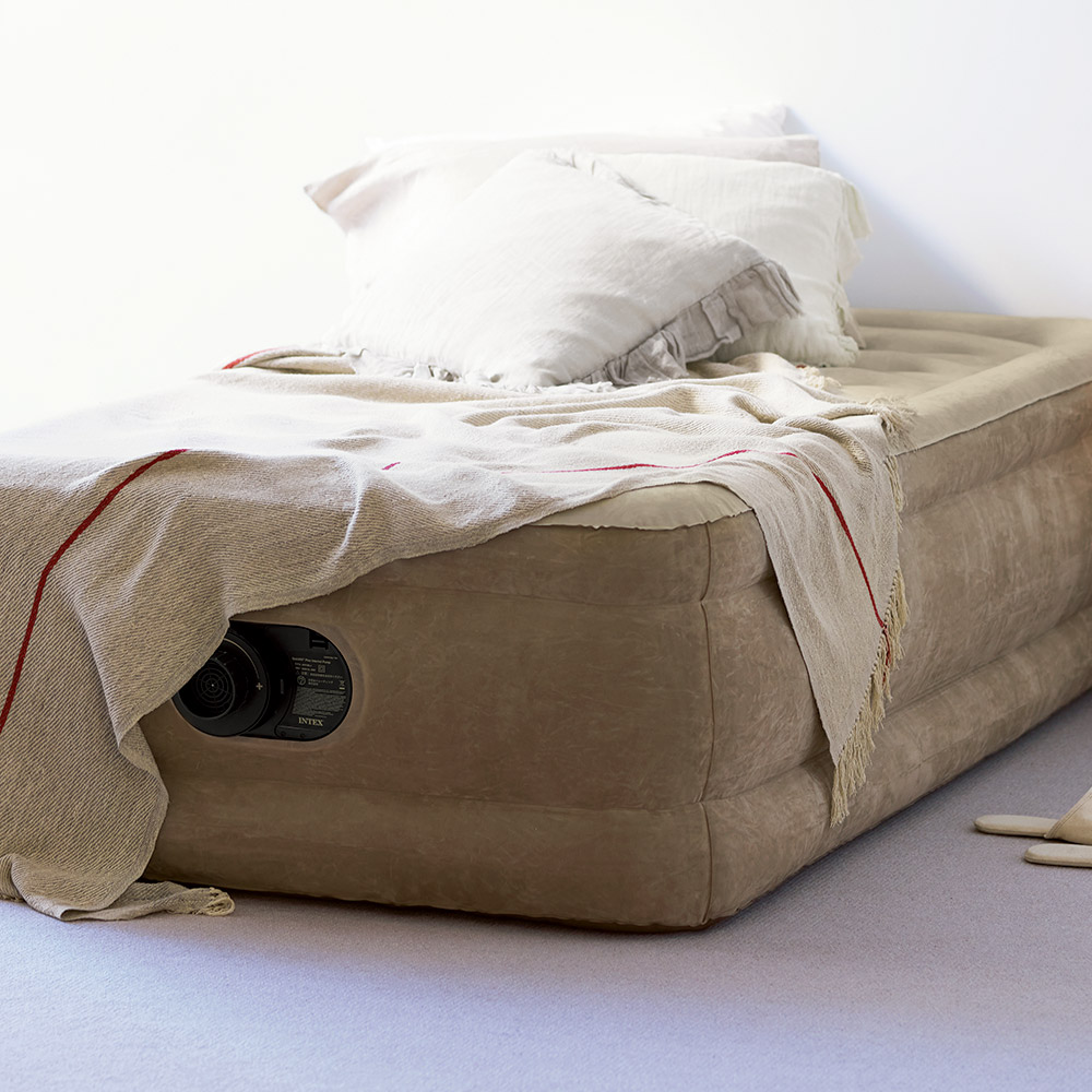 アメリカ発大人気ブランド「インテックス」快適な寝心地の電動エアーベッド。必要な時にたった3分でベッドが現れる!たった3分で本格ベッドに!INTEX(インテックス)社のエアーベッド親戚や友人が泊まる際の布団、どうされていますか?押し入れを占領しているお客様布団は、久しぶりに出したらカビ臭い、、、。重たい布団を干したり運んだりするのも一苦労。そんな経験ございませんか?? そんな時におすすめなのがエアーベッド!しまっているときはコンパクト、スイッチを押せばたった3分で本格ベッドに。お手入れも簡単で、洗濯や干す作業もいらないから本当に使い勝手がイイ。しかも今回ディノスがご紹介するのは、アメリカ発大人気ブランドINTEX(インテックス)社のエアーベッドなんです!独自構造で寝心地も抜群。本当にオススメです。【ポイント1】スイッチひとつで本格ベッドに!電動だからスイッチ一つで本格ベッドができちゃうんです!しかもたった約3分! 年末年始やGW、お盆などの家族の集いや急な来客などに本当に重宝します!【ポイント2】老舗エアーベッドメーカーのINTEX社米国ロサンゼルス発の40年以上の歴史を誇る老舗ブランド。欧米を中心に世界約100カ国以上で7700万台以上(※)売れている大人気シリーズです。(※)2018年10月〜2022年11月シリーズ累計出荷数【ポイント3】独自構造で快適な寝心地アメリカ特許取得の「ファイバーテック構造」が快適な寝心地を実現!1850本の高強度ポリエステル繊維が寝ている人の動きに合わせて耐圧分散してくれるので、沈みこまず寝返りもしやすいんです。(※)アメリカ特許番号 US8562773B2【ポイント4】コンパクトに収納でき、持ち運びやすいベッドって動かせないし、場所を取りますよね、、。このエアーベッドなら使わない時はコンパクトに収納できちゃう!なんとしまうときもスイッチ1つ、3分でぺったんこに。だから、一人暮らしの方や単身赴任の方にもおすすめ。使わないときは部屋を広く使えるんです。また、車のトランクに入れてグランピングやキャンプ(※)に持っていったりと持ち運べるベッドとして大活躍しますよ。(※)室内用(電源が必要です)【ポイント5】高さ46cmのボリューム感で立ち上がりやすい!なんとこのエアーベッド、高さが46センチもあるんです!布団からだと、立ち上がるのに少し苦労しますよね、、。これはソファー感覚で、立ち上がる時もラクラク。【ポイント6】自分好みの硬さに調節可能!ベッドって一度購入すると硬さ変えられませんよね、、。このエアーベッドなら空気の入れ具合を調節できるから、お好みの硬さで寝ることができるんです!硬めが好みの方は空気を多めに。柔らかめが好みの方は空気を少なめで、お好みに合わせて寝ていただけます。
