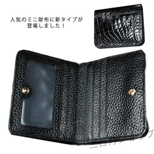 ■送料無料 財布 ミニ財布 二つ折り メンズ ショートウォレット 薄い 革 財布 コインケース クロコ型押し クロコダイル 型押しレザー さい