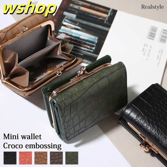 ■収納便利 レビュー高評価 かわいい 】クロコ型押し 小銭入れ レディース 札入れ コンパクト ミニ財布 おしゃれ がま口 カード入れ 【wsho
