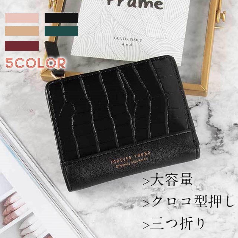 財布 ミニ財布 二つ折り レディース 大容量 クロコ型押し 三つ折り 鰐 コンパクト レザー PU カード入れ 小銭入れ プレゼント おしゃれ 可愛い