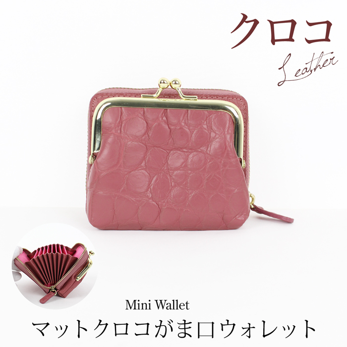 ■送料無料 【訳あり】ウォレット レディース 財布 訳あり マットクロコ クロコダイル 本革 レザー ワニ革 がま口 コンパクト ピンク[57224