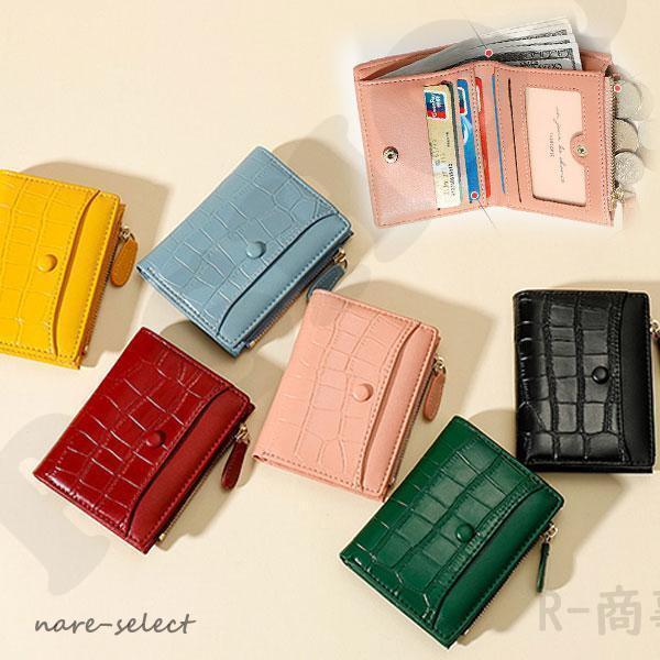 財布 ミニ財布 二つ折り レディース 大容量 クロコ型押し 三つ折り 鰐 コンパクト レザー PU カード入れ 小銭入れ プレゼント おしゃれ 可愛い
