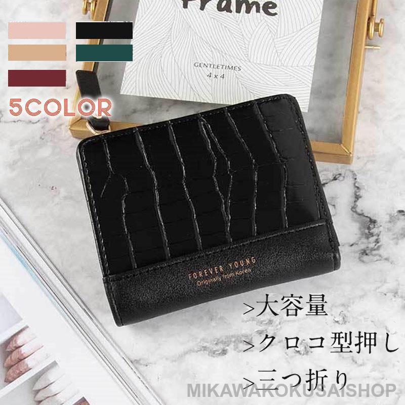 財布 ミニ財布 二つ折り レディース 大容量 クロコ型押し 三つ折り 鰐 コンパクト レザー PU カード入れ 小銭入れ お札入れ プレゼント おしゃれ
