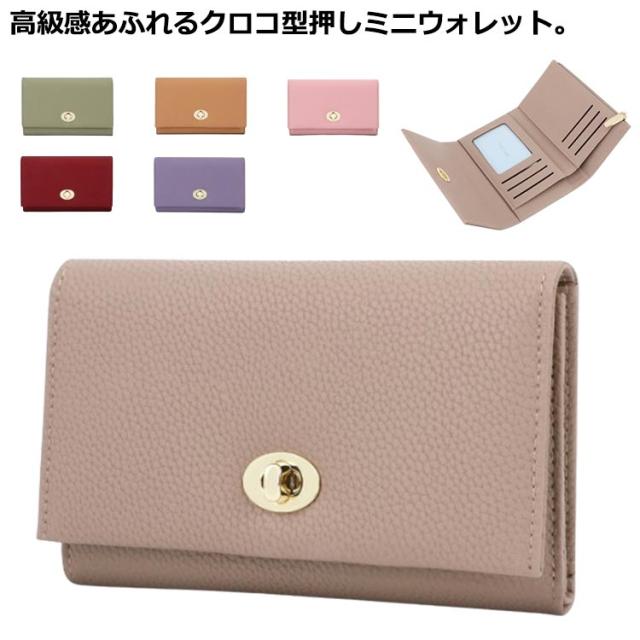 ■ミニ財布 ミニウォレット クロコ型押し レディース 財布 三つ折り財布 小さい財布 カード入れ 小銭入れ 大容量 お札折らない 使いやすい