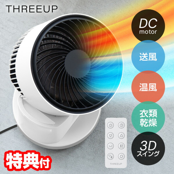 ■【 人気 母の日 ギフト 】 THREEUP 衣類乾燥機能付 サーキュレーター ヒート クール オールシーズン 部屋干し時間短縮 上下左右の首振り