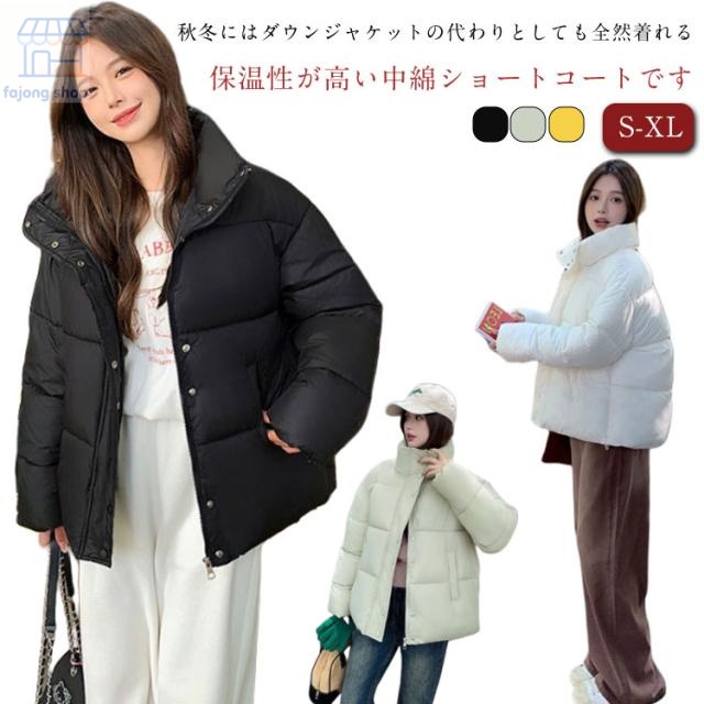 ■ダウンコート 中綿ジャケット ダウンジャケット レディース 厚手 ブルゾン ショート 大きいサイズ スタンドカラー 秋冬 オーバーサイズ