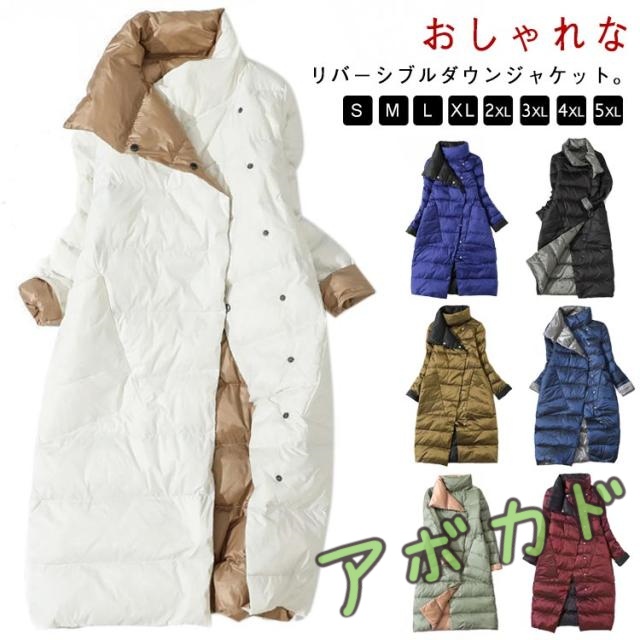レディース 暖かい ロングコート ダウンコート スタンドカラー ロング アウター 秋冬 ロングダウン リバーシブル M 冬服 スリム 防寒 ダウンジャケット 秋服 大きいサイズ S リバーシブル L XL 2XL 3XL 4XL