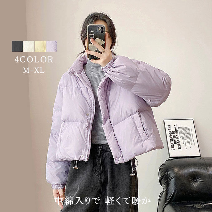 中綿ダウンコート レディース ショート丈 キルティング 中綿 ダウンコート ブルゾン アウター 中綿コート 中綿入り スタンドカラー フェイクダウン 秋 冬 ゆったり 30代 40代 50代 20代中綿ダウンコート レディース ショート コート ジャケット 豊富な品揃え ブラック アイボリー イェロー パープル M L XL