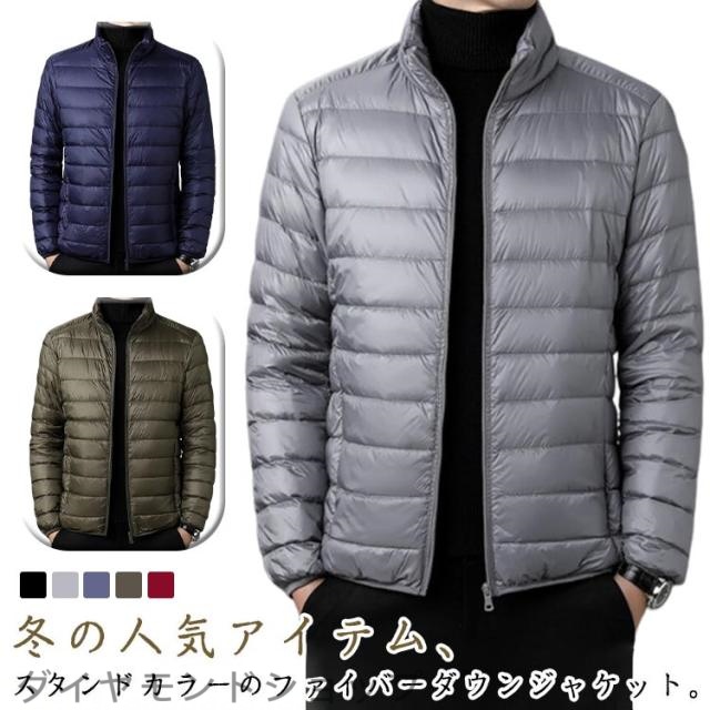 軽量 メンズ ダウン風ジャケット インナーダウン ライト 中綿ジャケット スタンドカラー 立て襟 薄手 ジャケット 細身 防寒 中綿ジャケット 暖かい ファイバーダウン インナージャケット 中綿コート ショート丈 秋冬 アウター