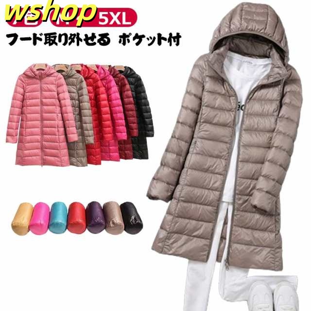 ■即納OK レビュー高評価 40代 【wshop スリム 軽量 防寒 ライトダウン 秋冬 ロング 保温 冬服 収納ポケット付き 】レディース ダウンコー
