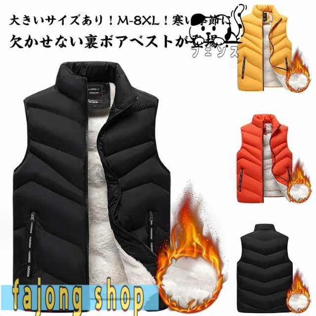 ■メンズ 中綿ベスト 保温 あったか 裏ボア ダウン風ベスト 大きいサイズ 防寒 厚手 防寒着 防風 袖なし 送料無料 無地 ファスナー 秋 スタ