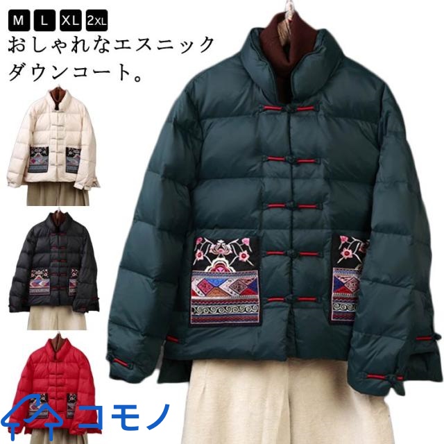 きれいめ エスニック 暖かい ショート エスニック チャイナボタン ダウンジャケット チャイナ風 秋冬 ショートジャケット スタンドカラー ダウンコート 刺? おしゃれ レトロ M L XL