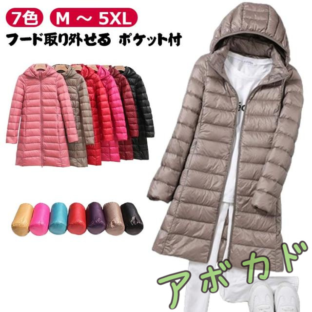 ■ダウンコート レディース ロング 軽量 ロング丈 ダウンコート 送料無料 ライトダウン 30代 40代 50代 フード付き 取り外し可能 スタンド