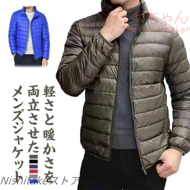 ダウンジャケット メンズ フード付き ジャケット コート スタンドカラー カジュアル 防風防寒 防水 5色選択可 柔らかい